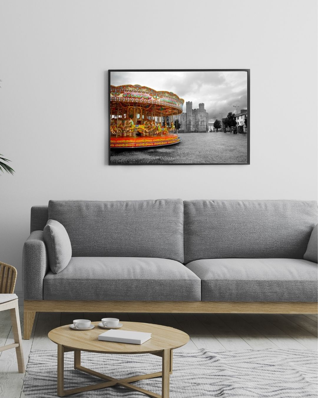 This image captures the contrast between childhood wonder and medieval majesty. This charming carousel set against the historic backdrop of Caernarfon Castle truly captures the moment where timeless joy meets centuries of Welsh heritage.