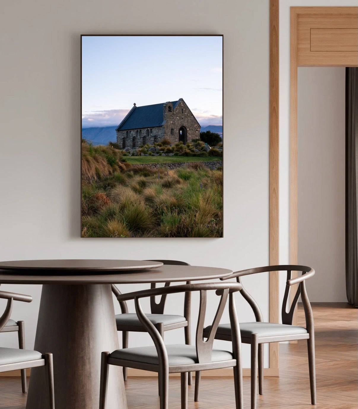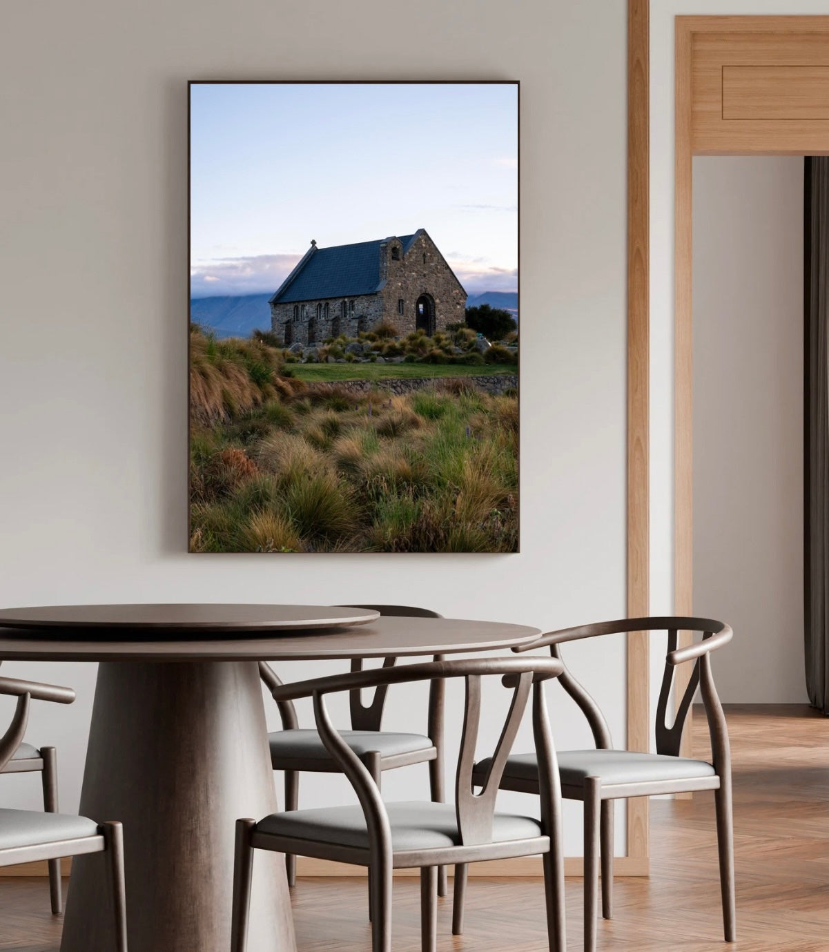 Captured at first light on the shores of Lake Tekapo, the Church of the Good Shepherd stands quietly against a softening sky.